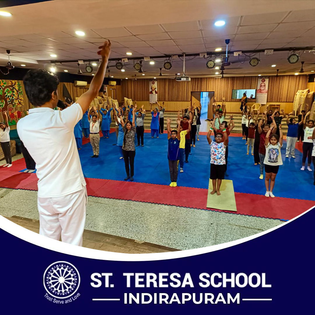 On June 21st, St. Teresa School celebrated International Yoga Day with great enthusiasm. Teachers and students gathered on the school campus to participate in various yoga asanas and breathing exercises. The event began with a special morning assembly featuring Surya Namaskars, Vrikshasana, and Pranayama techniques.